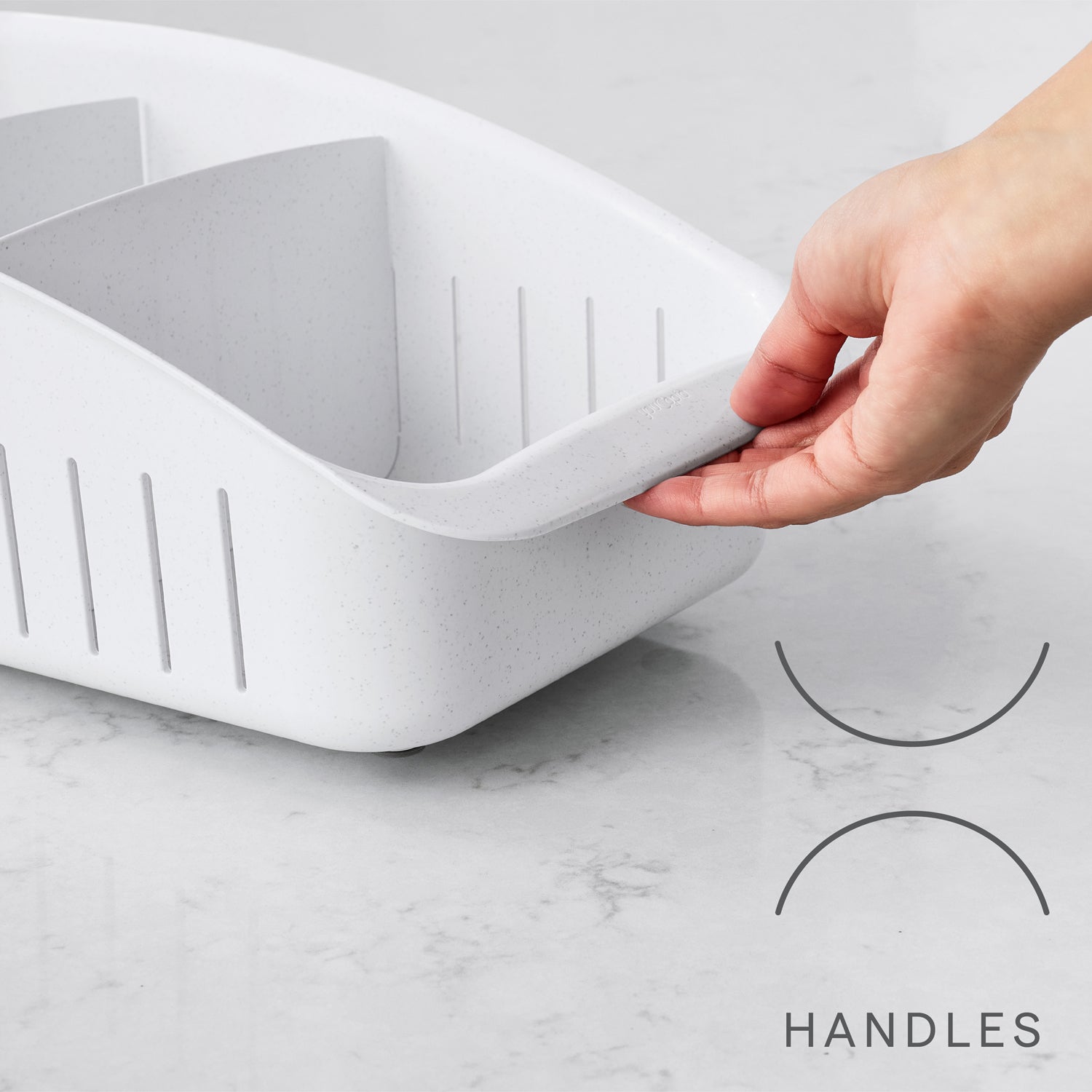 - Measures 15.0" D x 8.1" W x 5.6" H; made with high-quality, BPA-free, recycled plastic; speckled white color