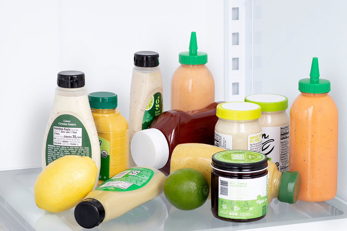 It’s hard to find items in the back of a crowded fridge. We created a low-wall turntable with mat to keep staples in rotation and make clean-up easy.