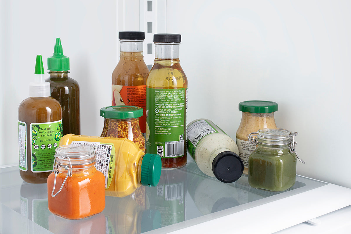 Place caddy on any flat surface in the fridge, cabinet or pantry.