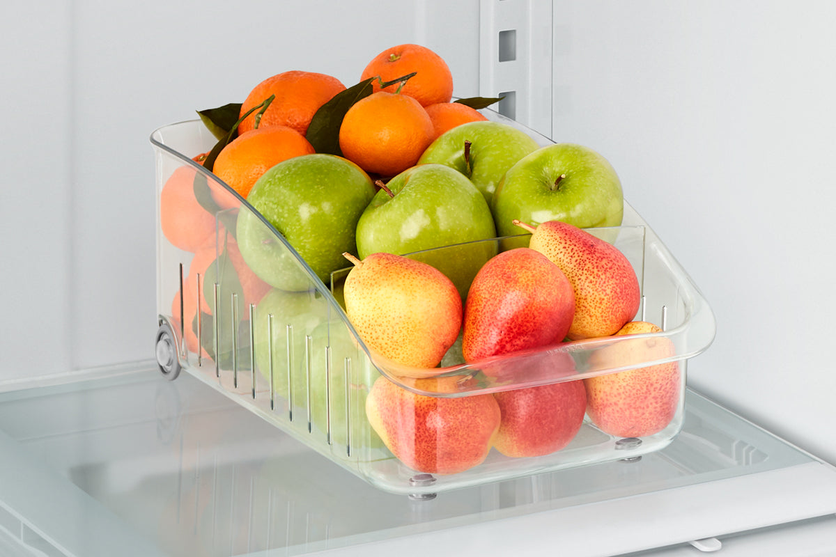 - Two adjustable dividers create compartments for produce, meals, snacks and more