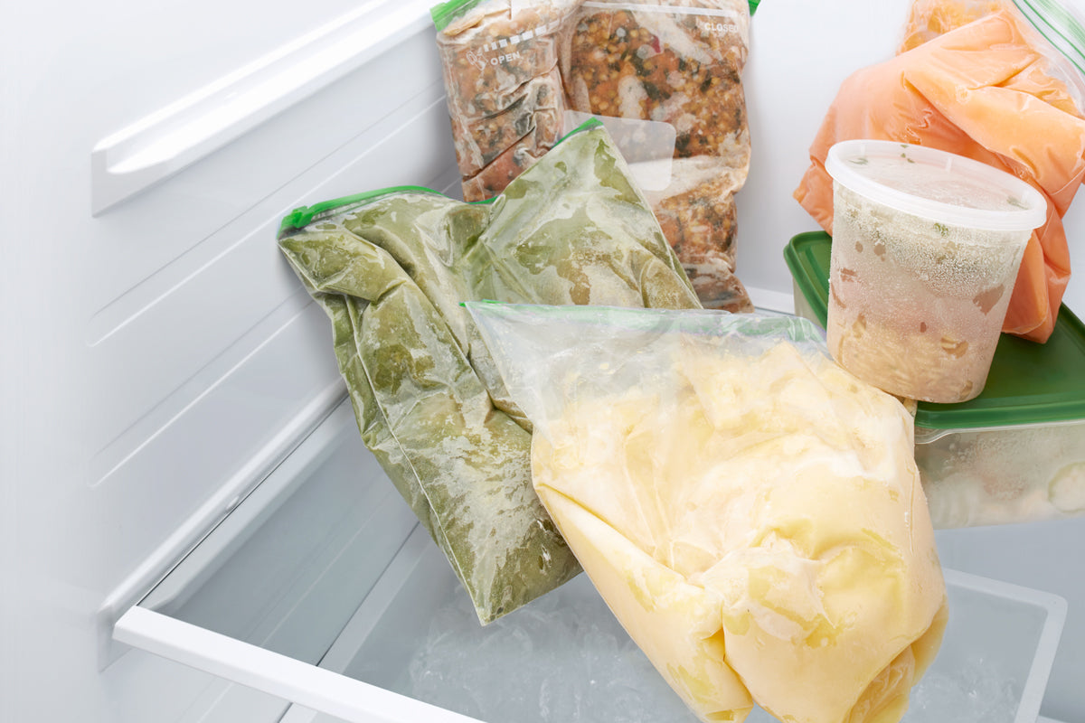 Ice trays freeze baby-size portions, but we needed a solution for family-size meals. Our vertical molds freeze bags in clean, space-saving blocks.