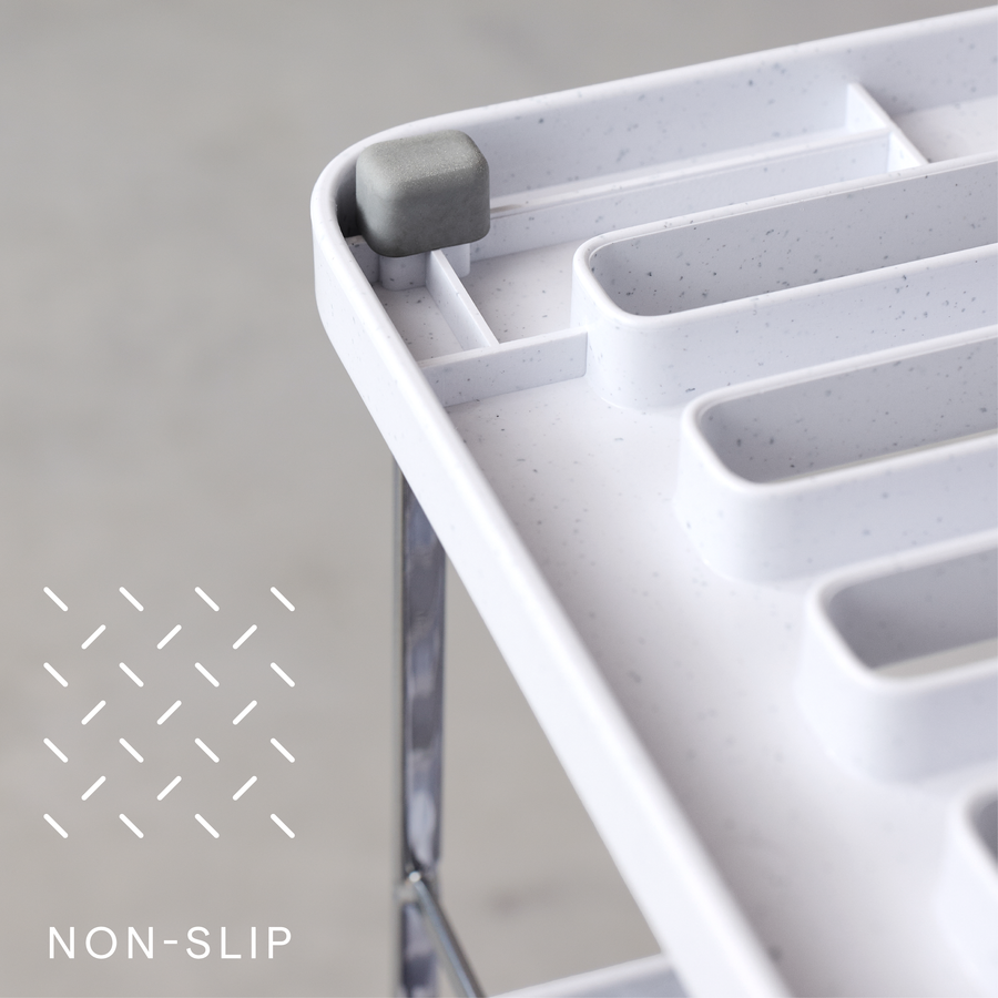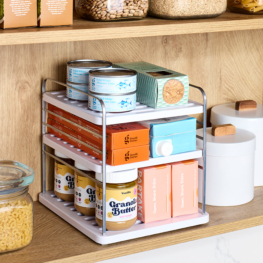 From YouCopia's Organizing Hero™ Collection, the best-selling UpSpace® Cabinet Organizer is now redesigned with a fresh look and (even) better functionality. Two shelves are height adjustable to fit a variety of items and maximize vertical cabinet space. Non-slip feet keep the organizer in place when sliding boxes in and out. With items arranged in tidy tiers, you’ll be ready for a seamless find every time.
