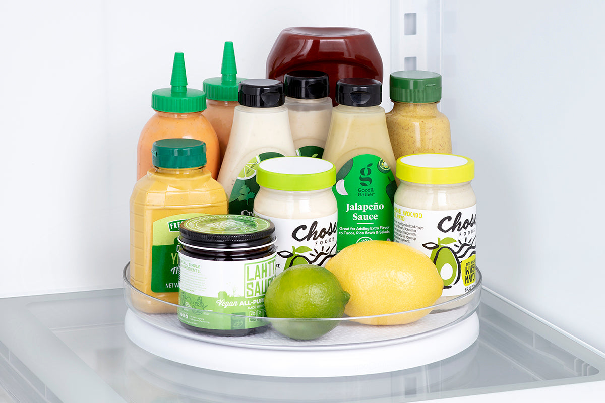FridgeView Fridge Turntable doesn’t put anything in the (back) corner. A rotating base brings items forward with a simple spin. An easy-to-clean non-slip mat means there’s no crying over spilled milk (or juice or sauce). With food this organized, you’ll feel like dancing in front of your fridge.