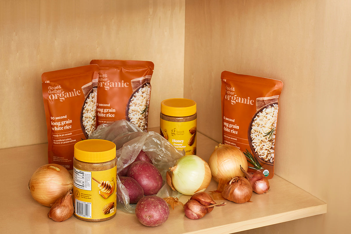 - Organizes produce, dry goods, baking supplies, snacks and more